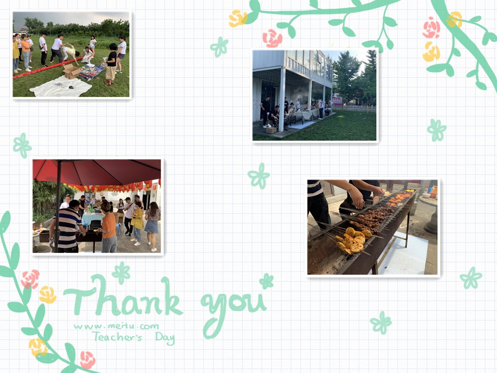 到达目的地:所有的小伙伴收拾好自己的行李,分配房间、集合,分工合作,洗菜、切水果、串肉、烧烤等!